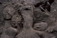 Jordan. Amman, Ain Ghazal, the upper layer of the cache of plaster human statues and busts