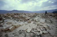 Jordan. Khirbet et-Tannur, view to lower courses of Inner Temenos Enclosure facade