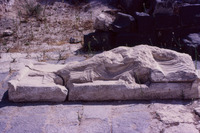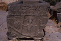 Jordan. Umm Qais (Gadara), relief carvings on a third century AD. basalt sarcophagus