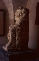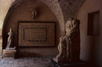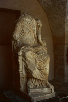 Jordan. Umm Qais (Gadara), cross vaulted sculpture hall in Beit al-Rusan, the statue of Tyche