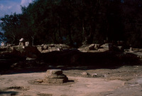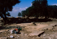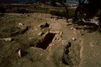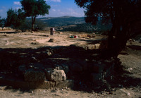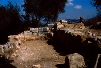Jordan. Tall Mar Elias, Church of Saint Elijah, main church, column base still in their original position