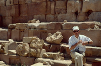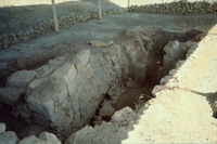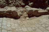 Jordan. Tall Mar Elias, Church of Saint Elijah, main church, column base still in their original position