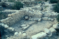 Jordan. Petra, Beidha (archaeological site), rectangular houses divided into six small rooms by thick, unplastered internal walls