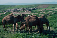 Jordan. Pella (Tabaqat Fahl), camels, spring vegetation