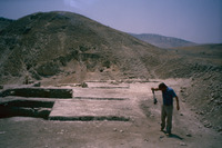Jordan. Pella (Tabaqat Fahl), Alan Walsmley giving a tour of excavation in spring