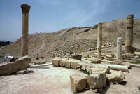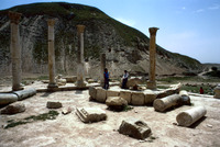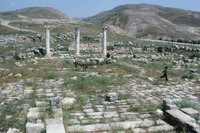 Jordan. Pella (Tabaqat Fahl), the West Church, three columns in its atrium colonnade were put back in their original positions by the DoA, the church was built 6th Century