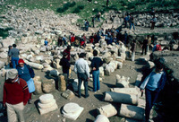 Jordan. Pella (Tabaqat Fahl), collapsed arch found on the western side of the atrium in the Civic Complex. The stones have been reassembled in their original order for eventual resetting