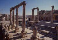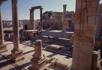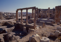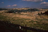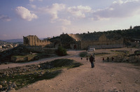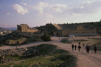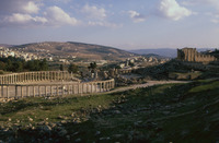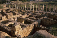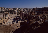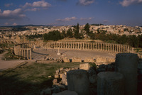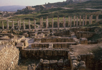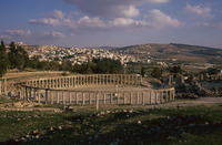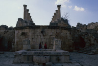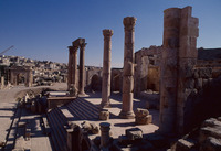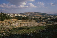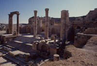 Jordan. Jerash, The Fountain Court with the ruins of the Cathedral