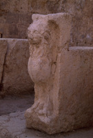 Jordan. Jerash, Macellum (Agora), mensa legs decorated with lions and in high relief inserted in a Byzantine structure
