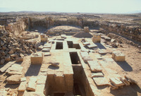 Humeima, Lower church, aqueduct blocks re-used as base for chancel screen