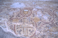 Safi, Lot's church, detail of bull in mosaic in front of apse