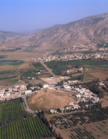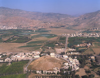 Jordan. Deir Allah, ancient tell in middle of town, view from east