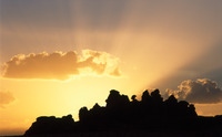 Saudi Arabia. Mada'in Saleh, sun setting behind Jabal Ethlib