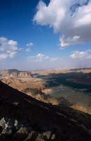 Saudi Arabia. Al-Ula, view north over wadi and mountains from Jabal Harra
