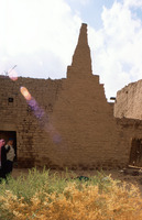 Saudi Arabia. Mada'in Saleh, Qasr al-Bint and remains of old house in forground