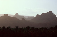 Saudi Arabia. Al-Ula, view south over town, wadi and mountains from Jabal Harra
