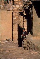 Yemen. Thula, near Sana'a, a boy in doorway