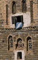 Yemen. Thula, near Sana'a, house façade