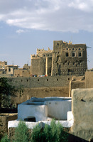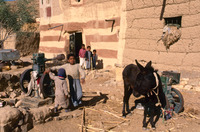 Yemen. Plasterers at work, Farwa village, south of Sa'ada