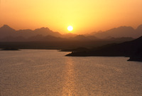 Yemen. Marib, sunset over new dam