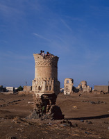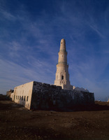 Yemen. Mocha, Dilapidated minaret and warehouses