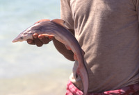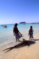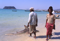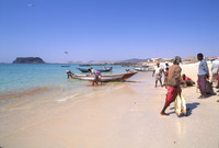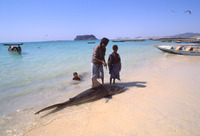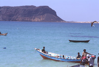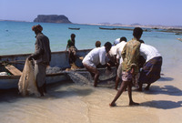 Yemen. Bir Ali fishermen, Husn al-Ghurab behind
