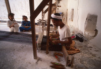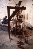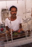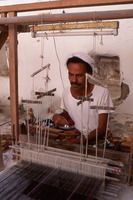 Yemen. Ash-Shihr, weaver working at pit loom