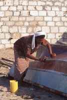 Yemen. Ash-Shihr fisherman cleaning boat