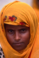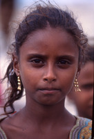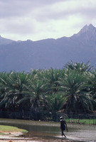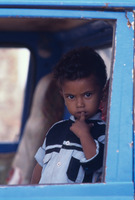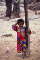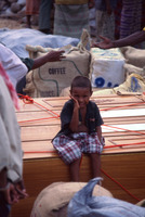 Yemen. Socotra, Qalansiya, boy watching boat unlading