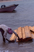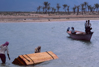 Yemen. Socotra, Qalansiya, imports from gulf brought to shore