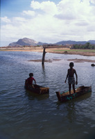 Yemen. Socotra, Hadibou , boys in miniature boats