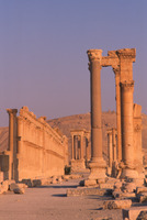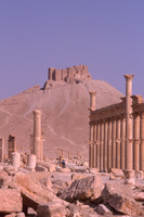 Syria. Palmyra, colonnaded street, Qala'at ibn Maan in background