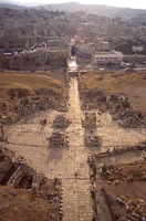 Jordan. Jerash, Colonnaded street and part of Oval Piazza from top of Theater