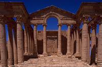 Iraq. Hatra, Temple of Marn, datail of restored capital