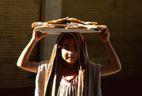 Iraq. Baghdad, al-Batawin area, women selling bread in street market
