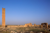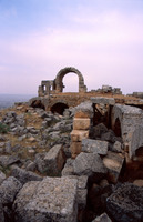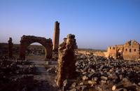 Turkey. Urfa, two columns and Corinthian capitals on citadel, from south