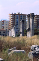 Turkey. Viransehir/Pompeiopolis, Colonnaded Street and modern city