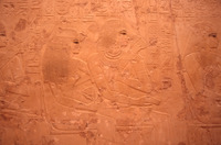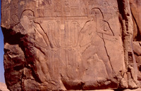 Egypt. Thebes, Colossi of Memnon, relief and Greek inscription