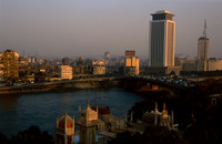 Egypt. Cairo, late afternoon view over Nile and 26 July bridge