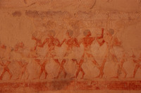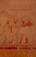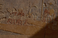 Egypt. Deir al-Bahri, Hatshepsut Temple, painted relief carving of oarsmen