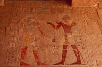 Egypt. Deir al-Bahri, Hatshepsut Temple, painted relief carving