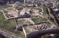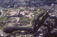 Amman Citadel from east, Umayyad complex right, Hercules Temple left