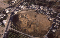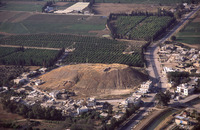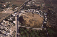 Jordan. Deir Allah, ancient tell in middle of town, view from north