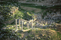 Pella (Tabaqat Fahl), view west from east church over civic complex to main tell