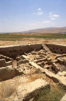 Jordan. Tall as Sa'idiyyah, mud brick walls and Jordan valley in background, looking north