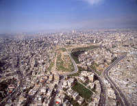 Amman, left - shaped citadel hill (Jabal al-Qala'a) in middle of modern city from south west