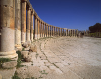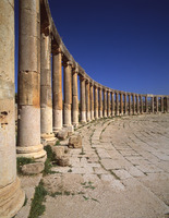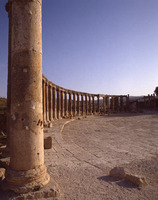 Jordan. Jerash, wild flowers, Oval Piazza and Temple of Zeus