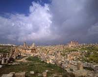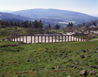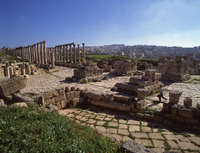 Jordan. Jerash, Fountain Court, St. Theodore's church behind