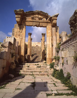 Jordan. Jerash, doorway and stairs from Cardo to Cathedral
