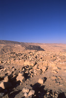 Khirbet et-Tannur, view east along Wadi Hasa and volcanic rock